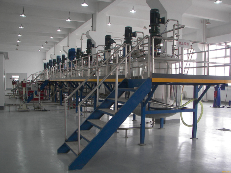 涂料成套設(shè)備采用液體計(jì)量器計(jì)量,高剪切乳化分散,真空吸料,真空消泡,半自動(dòng)灌裝工藝流程,從投料到出成品一道工序。涂料成套設(shè)備特殊設(shè)計(jì)的組合式乳化頭結(jié)構(gòu),確保了被加工物料在高、中、低各種粘度狀態(tài)下無死角運(yùn)行;釜內(nèi)動(dòng)態(tài)混合和釜外靜態(tài)混合的完善結(jié)合,保證顏料和高粘度樹脂的高度分散和充分混合。特殊的抽真空設(shè)計(jì),保證物料在真空狀態(tài)下生產(chǎn),可實(shí)現(xiàn)真空自動(dòng)吸料過程,減輕勞動(dòng)強(qiáng)度。完整的配置,無須用戶別配其他輔助設(shè)備接通電源即可生產(chǎn)。釜內(nèi)高剪切和釜外高剪切粉碎功能的同時(shí)作用,保證了物料的進(jìn)一步細(xì)化,并大大縮短了操作時(shí)間。